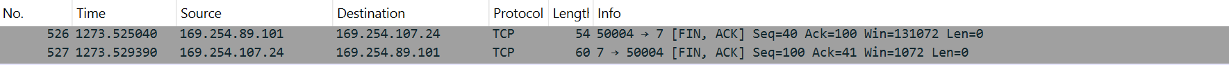 Fig. 8.6 Log showing the closing procedure of a TCP connection
