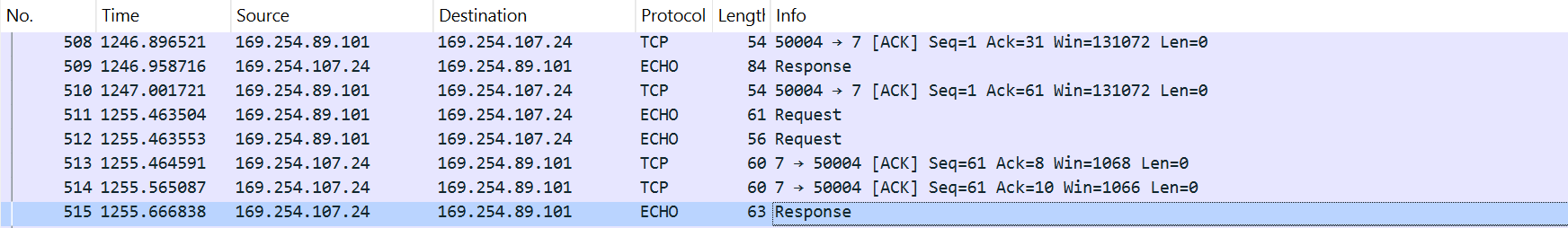 Now every input to the Putty terminal is echoed back. The image below illustrates the data send.